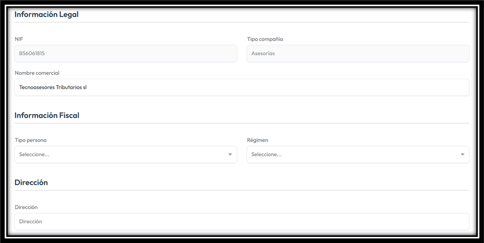 En esta sección podrás registrar los datos principales de tu asesoría.