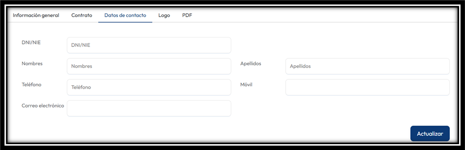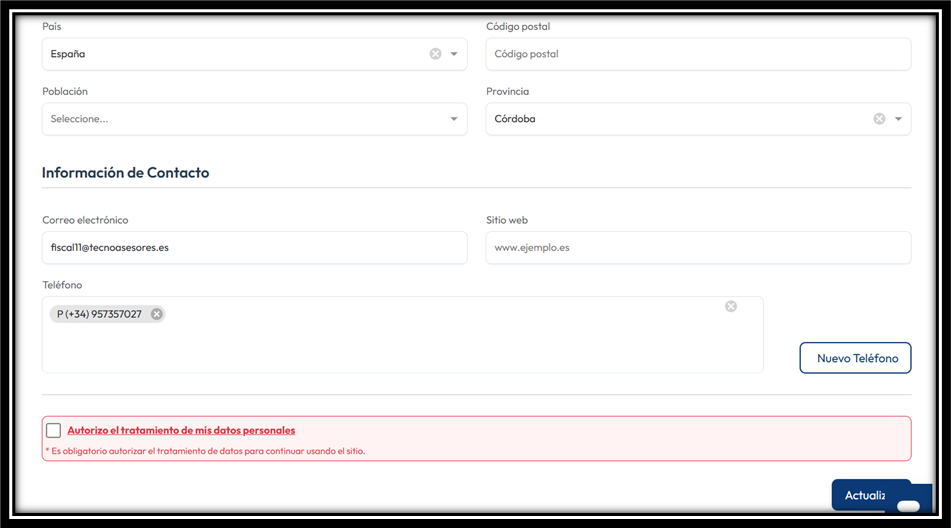 Al completar la información de los campos correctamente, hacer clic en el botón “Actualizar” para confirmar los cambios realizados: