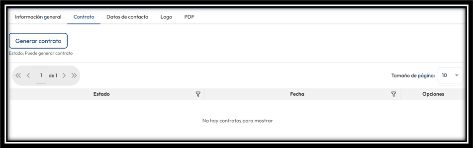 Dentro de la pestaña “Contrato”, podrás gestionar el contrato de prestación de servicios de tu asesoría.