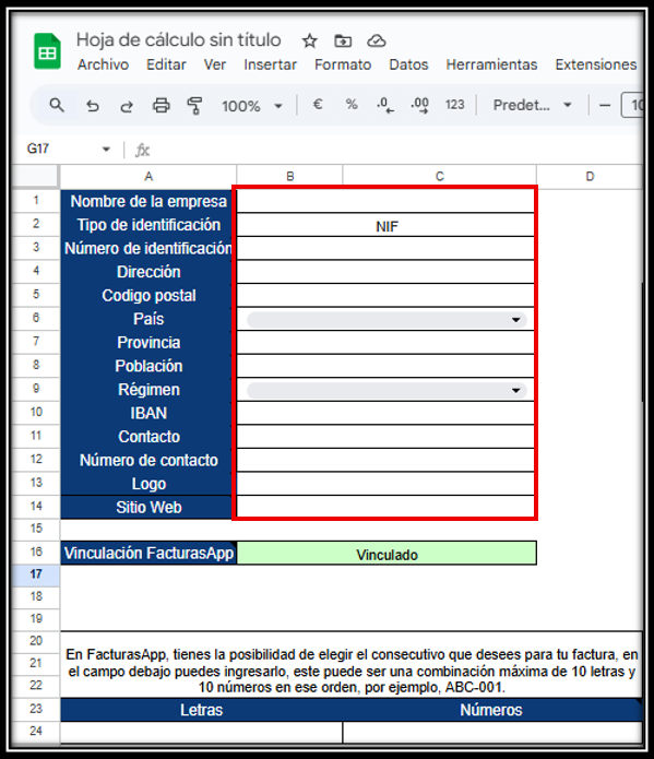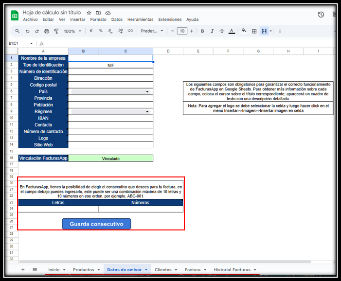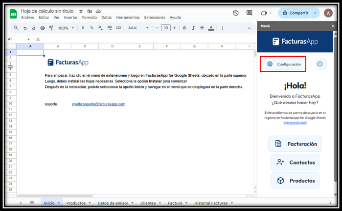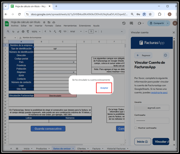 Vinculación de la Cuenta en FacturasApp for Google Sheets™