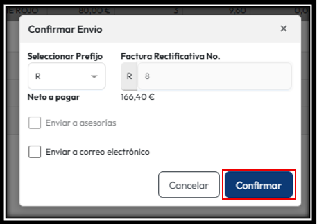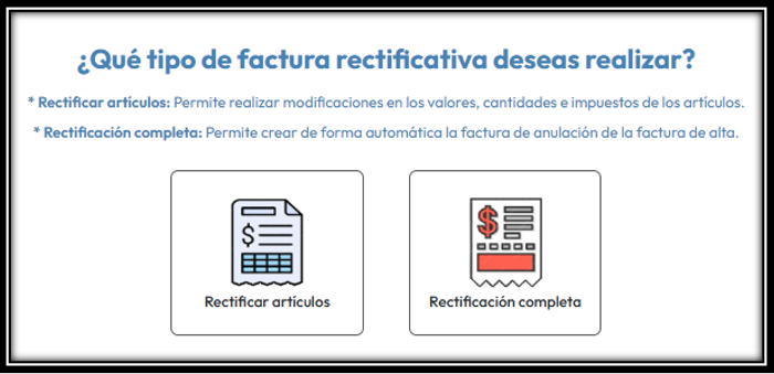 Le brindara la opción de hacer una factura rectificativa “Parcial” o “Completa”:
