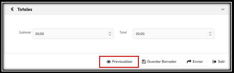 - “Previsualizar”: Puede ver el presupuesto antes de guardarlo, para modificarlo de ser necesario.