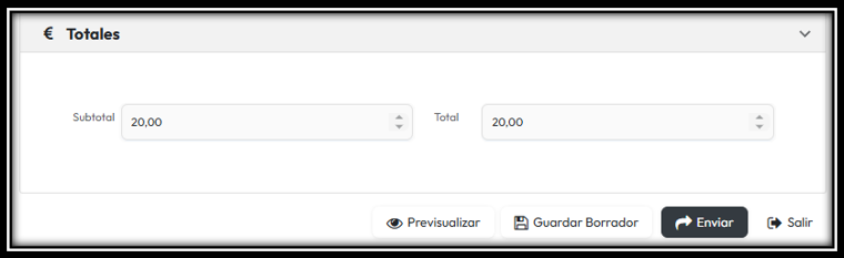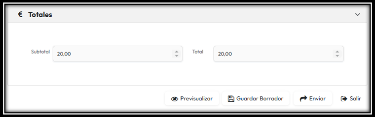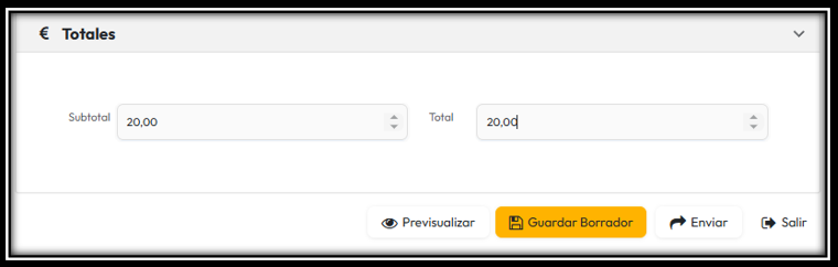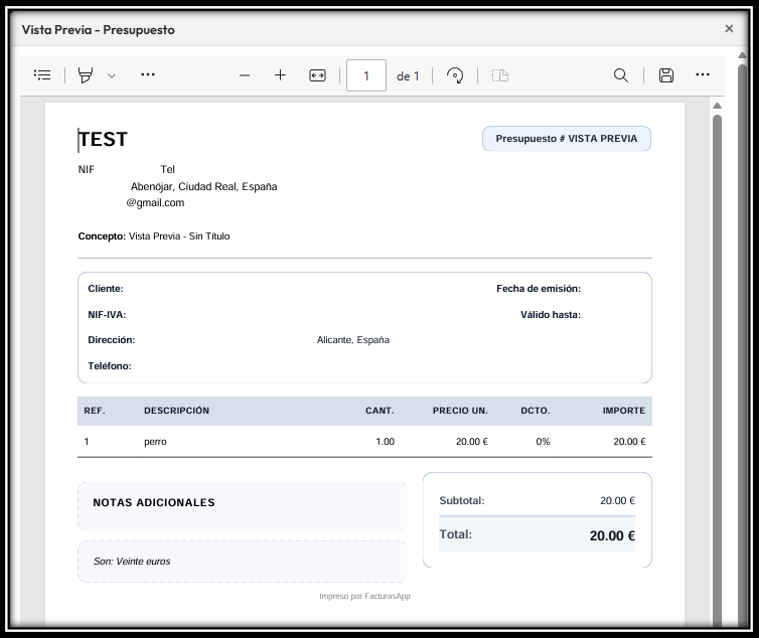 2.5. Totales: Aquí podrá ver el subtotal y el total del presupuesto: