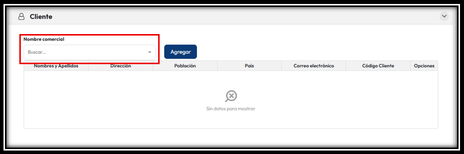 2.2 Cliente: La información de “Cliente” será precargada al escoger un registro en particular: