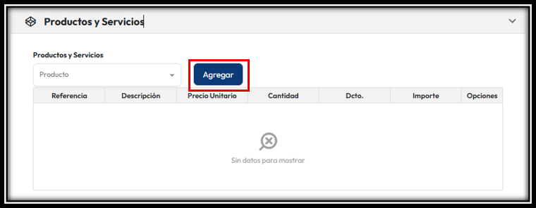 Si previamente no se ha parametrizado esta información, se puede hacer desde este paso en el botón “Agregar”; ingresar toda la información solicitada en el formulario, en la sección de “Descuentos” siempre hacer clic en el signo + para que el sistema guarde la información y finaliza con el botón “Agregar”: